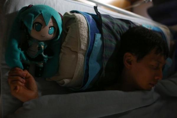 Akihiko Kondo tidur ditemani Miku. (FOTO: GETTY IMAGES)