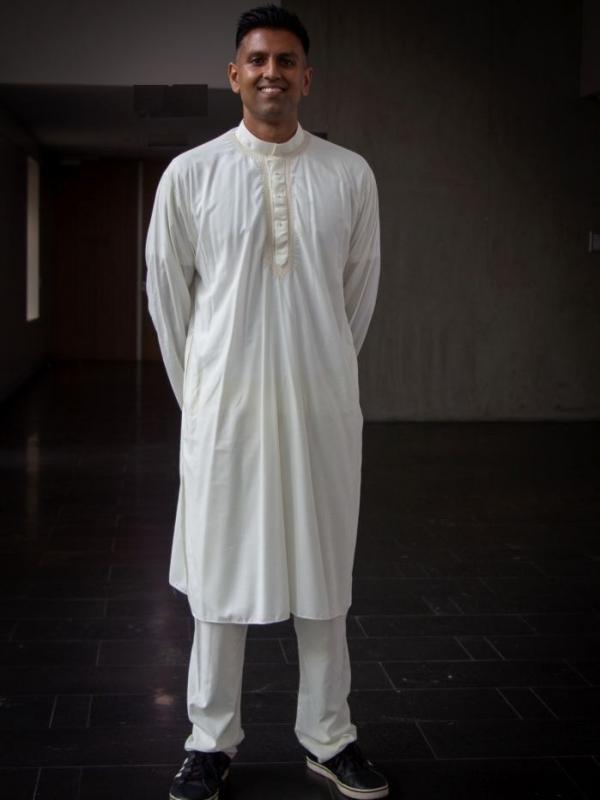 Amit Khaira dalam baju tradisional kurta yang ia pakai saat menikah. (FOTO: ABC Radio Perth/Emma Wynne)