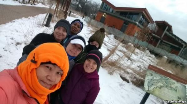 Lynn (paling depan) dan grupnya tetap berlari meski suhu jauh di bawah beku. (Foto: doc. pribadi)