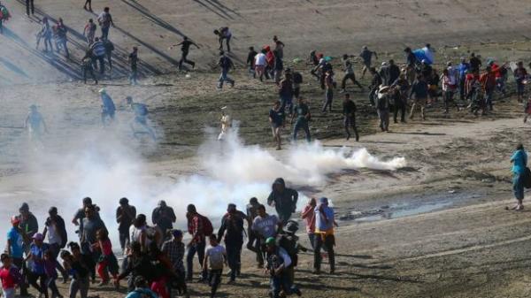 Petugas AS menembakkan gas air mata ke arah para imigran di perbatasan AS-Meksiko. (Foto: Reuters)
