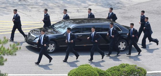 Hal ini terlihat saat Kim Jong Un bertemu dengan Presiden Korea Selatan (Korsel) Moon Jae In pada 27 April di Zona Demiliterisasi Panmunjom. Bahkan, mereka mengelilingi limusin Mercedes Benz Kim sambil berlari mengikuti pergerakan mobil.