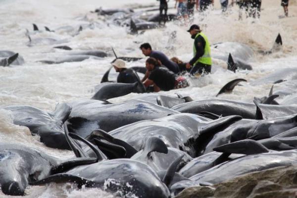 Petugas penyelamat berusaha menyelamatkan beberapa paus yang masih bisa bertahan hidup. (Foto: ABC News)