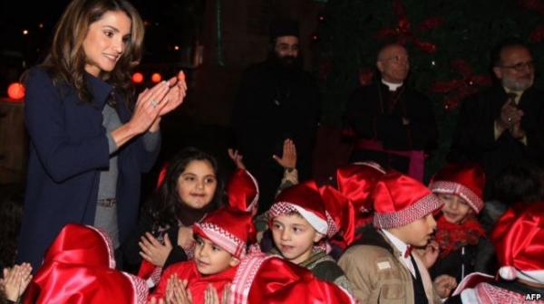 Istri Raja Abdullah II, Ratu Rania, menyanyikan lagu Natal bersama anak-anak di Amman.