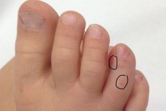Jari kaki Jaxon Bird mulai membengkak setelah digigit ular yang untungnya tidak berbisa. (Contributed: Kirby Bird)