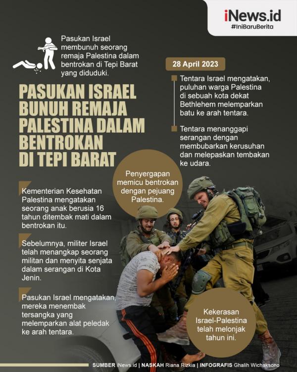 RAMALLAH, iNews.id - Pasukan Israel membunuh seorang remaja Palestina dalam bentrokan di Tepi Barat yang diduduki.