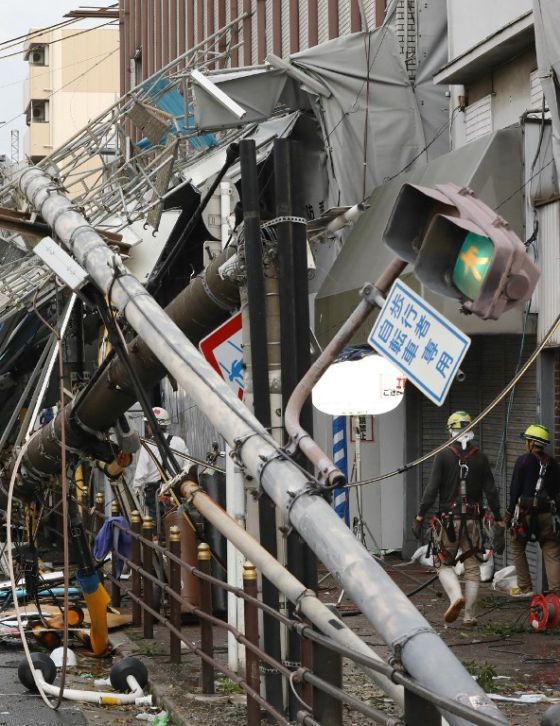 Kapal tanker berbobot 2.500 ton lebih terempas angin dari Teluk Osaka hingga menghantam jembatan yang menghubungkan bandara Kansai, menyebabkan kerusakan struktur. Akibatnya ribuan orang terlantar di bandara sebelum dievakuasi menggunakan kapal pada Rabu pagi ke Kobe.