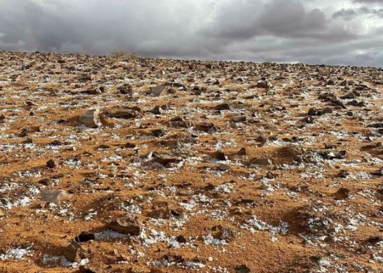 Selain salju, hujan es juga semakin sering terjadi di wilayah Saudi seperti di Turaif.