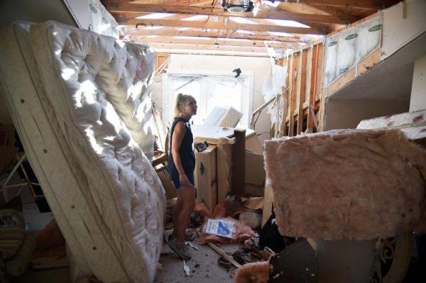 4. Kristen Garcia menunjukkan kerusakan di bagian dalam rumahnya akibat amukan Badai Michael. Kristen dan neneknya, Jadwiga Zykizka Garcia (93), selamat dari angin topan dengan berlindung di kamar mandi rumah mereka di lantai tiga.