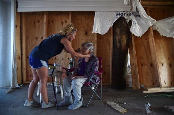 5. Kristen Garcia saat membantu neneknya Jadwiga Zykizka Garcia (93) di rumah mereka yang rusak akibat Badai Michael, di Pantai Meksiko, Florida.