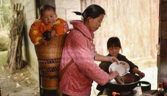 (Shi Xiaoqin saat mengasuh anaknya di rumah/Ynet)