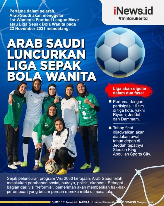 RIYADH, iNews.id - Arab Saudi menggelar 1st Women's Football League Move atau Liga Sepak Bola Wanita pada 22 November 2021 mendatang. Ini merupakan yang pertama dalam sejarah Arab Saudi.
