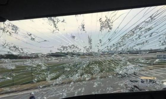 Kaca depan retak dan hidungnya penyok. Tak hanya itu, badai juga membuat radar cuaca pesawat tak bisa bekerja.