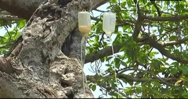 Cairan 'infus' pestisida yang ada di pohon beringin di India. (Foto: BBC)