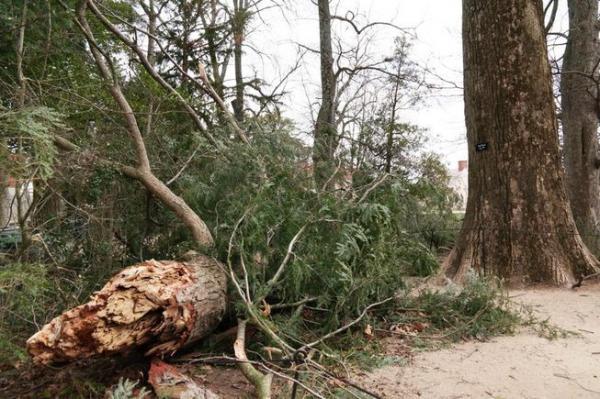 "Hari ini di Mount Vernon, angin yang kuat menumbangkan sebuah pohon Hemlock Kanada berusia 227 tahun, serta pohon Cedar Virginia yang biasa mengawasi makam Washington selama bertahun-tahun," ujar pengelola Mount Vernon melalui akun Facebooknya.