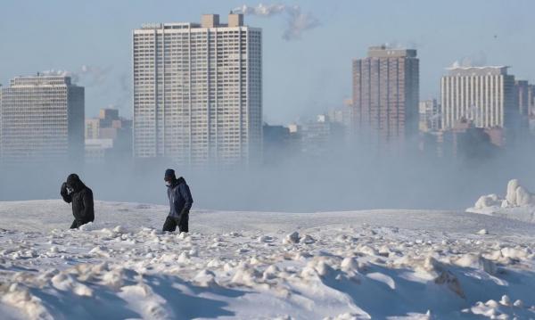 Orang-orang berjalan di sepanjang Pantai North Avenue saat suhu sekitar -20 derajat. (Foto: AFP)
