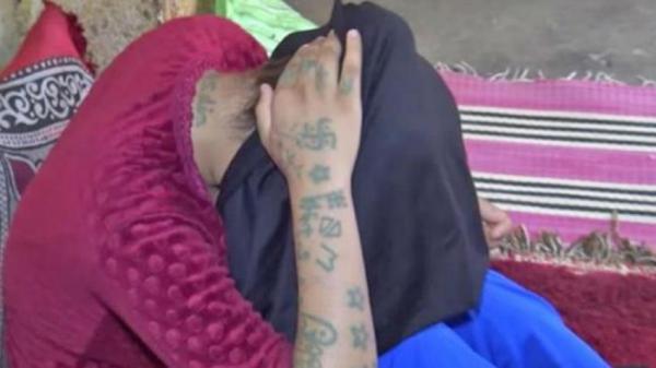Khadija Okkarou menunjukkan luka dan tato yang diukir di tubuhnya. (Foto: Twitter)