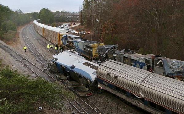 Kereta Amtrak bertabrakan dengan kereta barang CSX dalam perjalanan antara New York dan Miami, pada pukul 02.35 pagi di Cayce, South Carolina. Akibat tabrakan itu, lokomotif kereta keluar jalur rel dan beberapa gerbong penumpang ringsek.