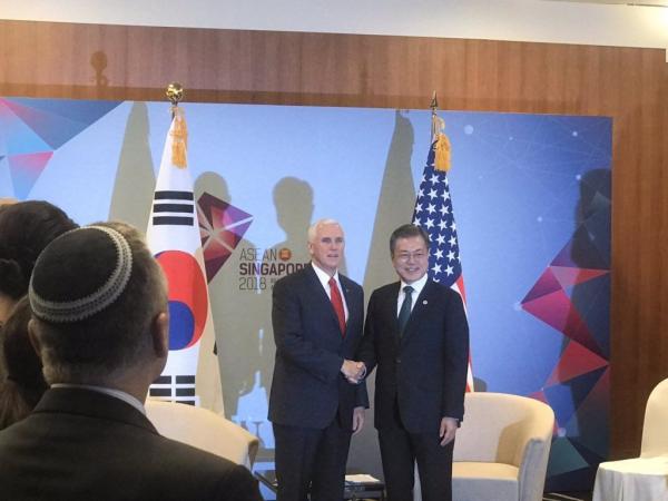 Presiden Moon Jae In tertidur sesaat sebelum bertemu Wakil Presiden Amerika Serikat (AS), Mike Pence. (Foto: istimewa)