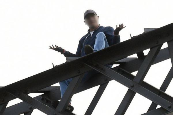 Beberapa jalur ditutup setelah Wayne John Cook (43) memanjat jembatan itu pada jam sibuk di pagi hari pada April. Butuh waktu hampir enam jam bagi petugas untuk menurunkannya.