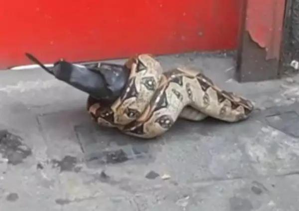 Ular piton melilit dan memakan kepala merpati di jalan di London. (Foto: Youtube)