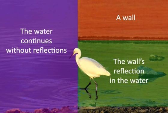 Garis tajam membelah bingkai menjadi dua, namun burung itu berjalan di zona dua warna, yakni oranye di sebelah kanan dan biru di sebelah kiri. Bagian kanan terbagi lagi menjadi atas dan bawah yang menciptakan ilusi cakrawala. Tak heran jika foto itu diberi judul 'Hedatari' atau 'Seperasi'. Posting-an foto tersebut di platform X, sebelumnya bernama Twitter, sudah dilihat hampir 6 juta kali.