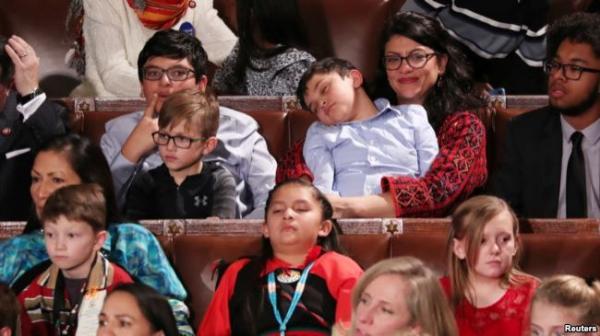 Tlaib di hari pertamanya sebagai anggota DPR. (Foto: Reuters)