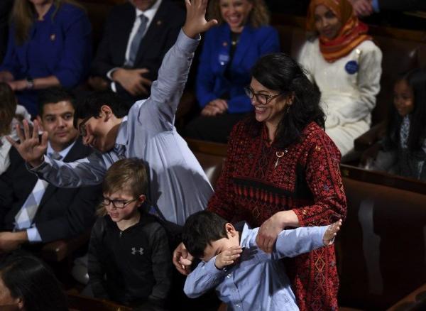 Saat dilantik Tlaib turut ditemani dua orang putranya yang mencuri perhatian karena kerap berpose 'dab' saat ibu mereka bertugas di hari pertama.