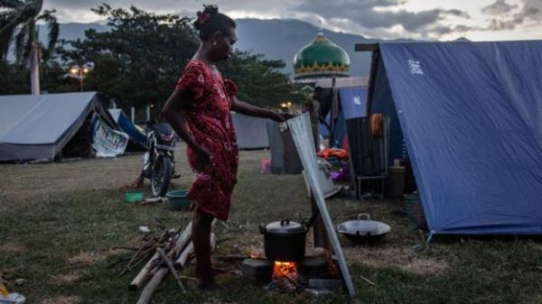 Sebagian bantuan untuk warga yang terkena dampak bencana sudah sampai di tangan mereka, termasuk tenda-tenda penampungan. (Foto: ULET IFANSASTI/GETTY IMAGES)