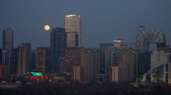 (Penampakan bulan purnama yang baru terbit di langit Beijing/Foto: Reuters)