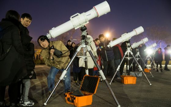 Sekitar 400 orang mengenakan jas tebal rela antre di luar Planetarium Beijing untuk berkesempatan menikmati fenomena ini langsung dari delapan buah teleskop yang disediakan. Beijing termasuk salah satu kota di dunia di mana warganya bisa menyaksikan gerhana bulan total.