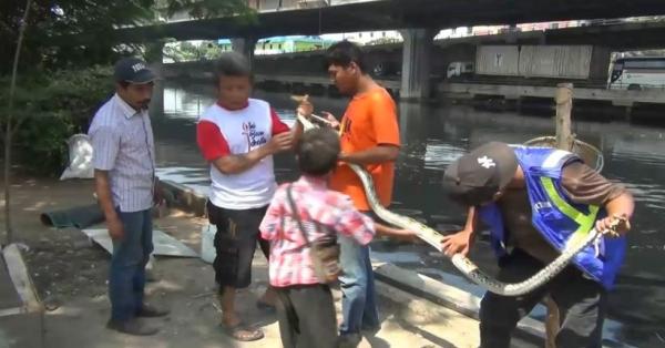 5 Ekor Ular Sanca Muncul dari Kali Ancol, Warga Ketakutan