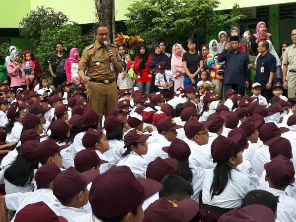 JAKARTA, iNews.id – Gubernur DKI Jakarta Anies Baswedan meninjau aktivitas hari pertama masuk sekolah di SDN Kampung Melayu 01, Jakarta Utara, Senin (16/7/2018). Anies kembali menekankan agar guru intens menjalin komunikasi dengan siswa maupun wali murid.