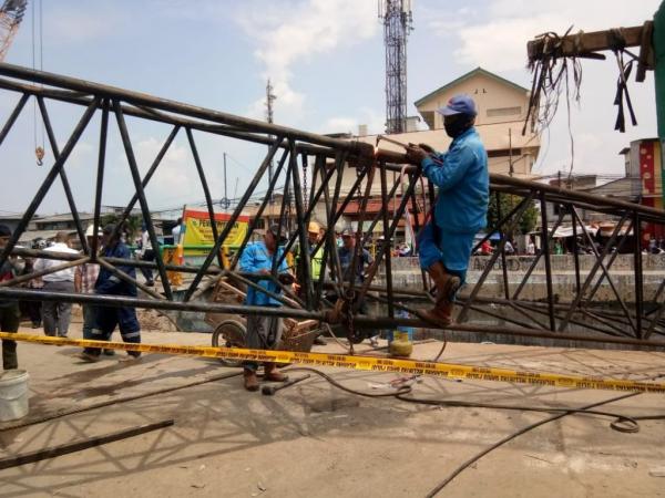 Untuk mempermudah proses evakuasi, sejumlah pekerja proyek tanggul Sungai Sentiong atau Kali Item memotong besi tiang crane. Butuh waktu sekitar satu jam untuk memindahkan crane yang melintang di jalan.