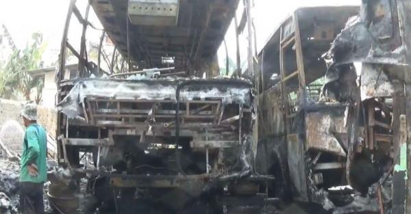 Gara-Gara Sampah Ban, 4 Unit Bus Pariwisata di Bekasi Ludes Terbakar