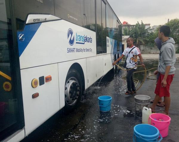 Jakmania Ramai-Ramai Bersihkan Coretan Vandalisme Bus Transjakarta
