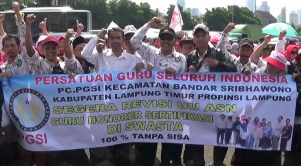 “Seperti yang kita ketahui, kesejahteraan guru honorer sangat jauh dibanding dengan guru pegawai negeri sipil. Padahal di lapangan pekerjaan kita sama, malah bisa lebih banyak,” kata Ketua Persatuan Guru Seluruh Indonesia (PGSI) Muhammad Fatayasin.