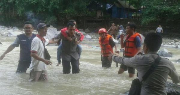 Proses penyelamatan korban dilakukan warga sekitar, tim Tagana Bogor, dan aparat kepolisian. Sebagian korban terpaksa dibopong dari tengah sungai. Dari lokasi kejadian, korban diangkut dengan menggunakan mobil kepolisian.