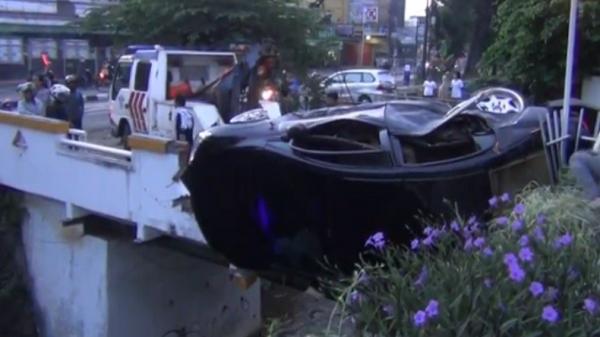 Kebut-kebutan, Sedan Hantam Tiang Listrik di Pasar Minggu, Sopir Tercebur Kali