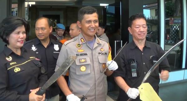 Dari tangan tersangka, polisi menyita barang bukti lima telepon seluler, lima unit sepeda motor milik tersangka, celurit, samurai, golok, serta satu sepeda motor hasil kejahatan pelaku.