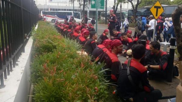 Mereka tiba dengan tertib mengikuti arahan petugas kawasan GBK dan kepolisian yang berjaga di lokasi. Dalam peringatan Hari Buruh kali ini mereka mereka menuntut kesejahteraan buruh dan demokrasi jujur, damai.