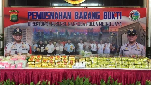 JAKARTA, iNews.id – Direktorat Reserse Narkoba Polda Metro Jaya memusnahkan barang bukti narkoba hasil pengungkapan selama kurun waktu enam bulan. Barang bukti yang dimusnahkan, yakni sabu seberat 123 kilogram, ekstasi sebesar 92.238 butir, dan ganja sebanyak 325 gram.