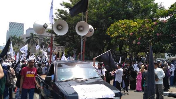 Protes Pembakaran Bendera, Massa Aksi Penuhi Badan Jalan Medan Merdeka
