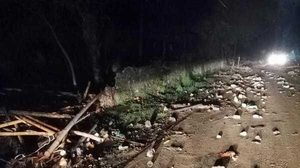 Saya putuskan putar balik. Sama saja, baru melaju sekitar 400 meter, material reruntuhan menutup jalan. Ada mobil Yaris merah di tengah jalan yang menabrak material gorong-gorong. Saya putuskan berhenti, tak melanjutkan perjalanan.