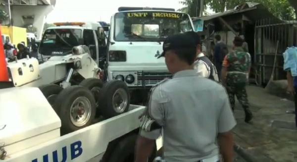 Saat petugas hendak mengikat as roda truk derek tersebut, tiba-tiba pengemudi masuk ke truk dan menyalakan mesin. Kemudian, oleh petugas dishub dihadang.