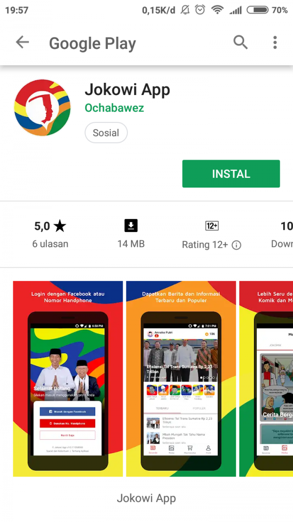 2 Hari Diluncurkan, JokowiApp Jadi Trending di Play Store