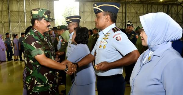 JAKARTA, iNews.id – Panglima TNI Marsekal TNI Hadi Tjahjanto memberikan selamat atas kenaikan pangkat 52 perwira tinggi (Pati) TNI. Upacara kenaikan pangkat berlangsung di Hanggar 17 Lanud Halim Perdanakusuma, Jakarta Timur, Jumat, 2 Februari 2018.