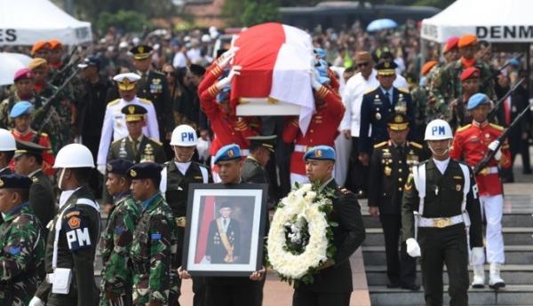 Prosesi pemakaman BJ Habibie di TMPN Kalibata, Jakarta Selatan, Kamis (12/9/2019). Upacara secara militer dipimpin Presiden Joko Widodo. (Foto: Antara).