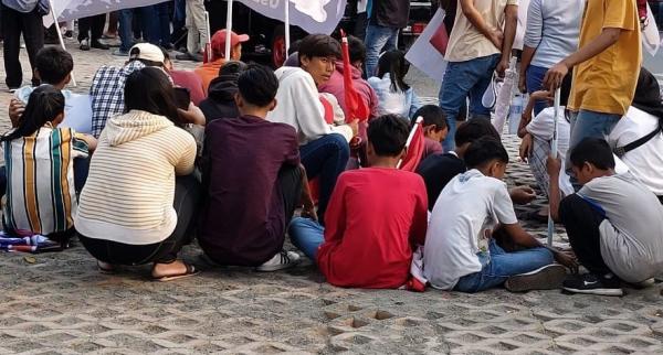 Tak hanya para remaja putri berpakaian penari yang di barisan depan, sejumlah anak kecil juga ikut berunjuk rasa. Namun mereka lebih memilih berteduh di bawah pohon untuk sekedar bermain dengan teman sebayanya.