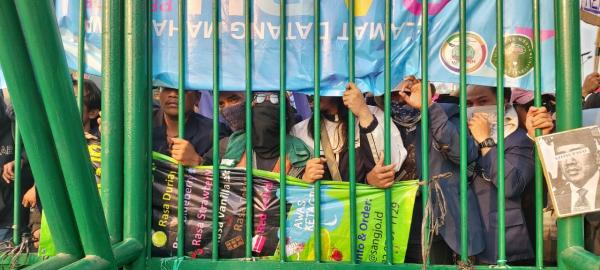 “Buka! Buka! Buka pintunya! Buka pintunya sekarang juga!” teriakan ratusan mahasiswa yang menggema di depan Kompleks Parlemen Senayan.