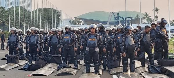 Sementara, dari dalam area Kompleks Parlemen, sejumlah aparat kepolisian telah bersiga. Dua kendaraan taktis barikade yang dilengkapi water cannon, serta puluhan satuan Brimob membawa tameng pun juga sudah dalam kondisi siap.